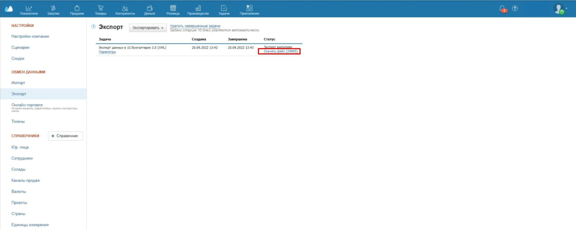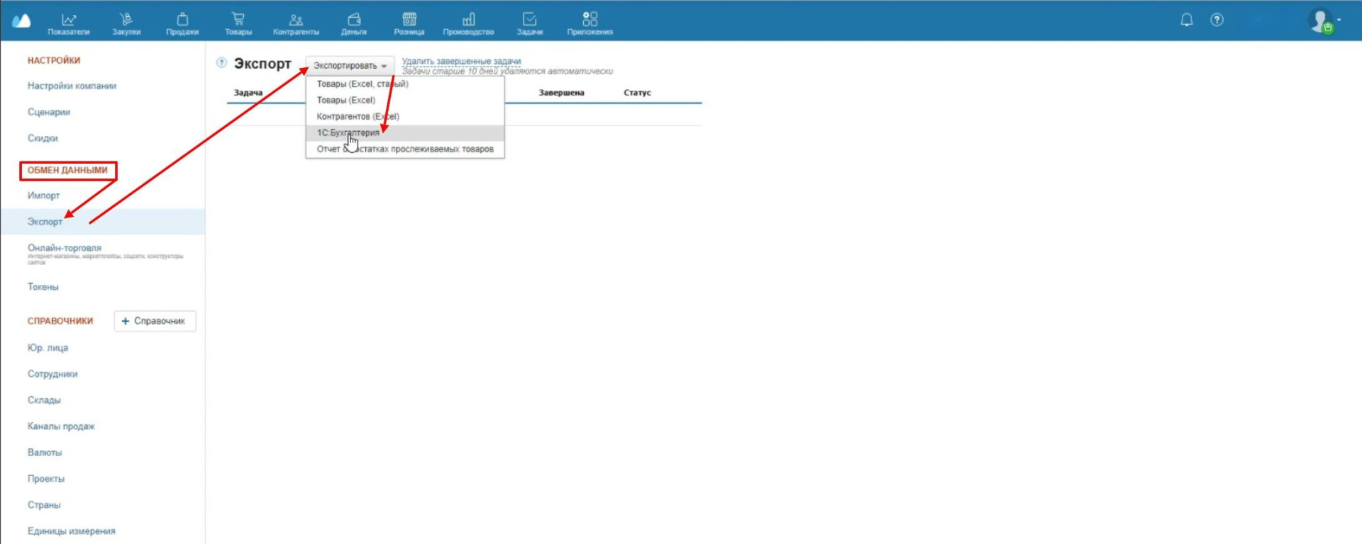 Перейдите в раздел «Обмен данными» и выберите опцию «Экспорт». Нажмите на кнопку «Экспортировать» и из предложенного списка выберите «Бухгалтерия 3.0». Система создаст архив в формате XML, который можно загрузить в 1С: БП 3.0.