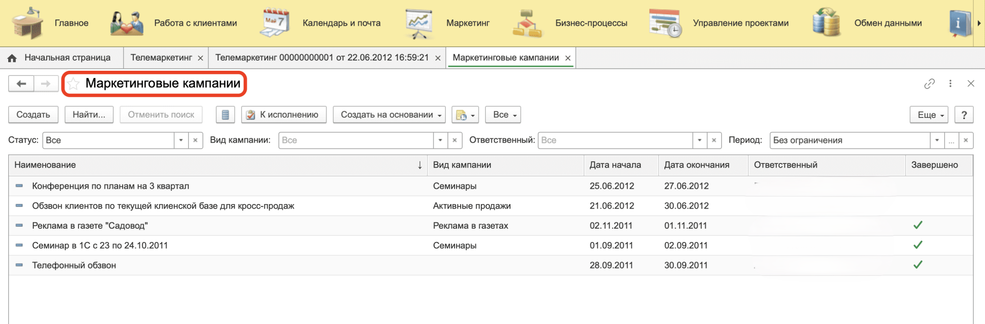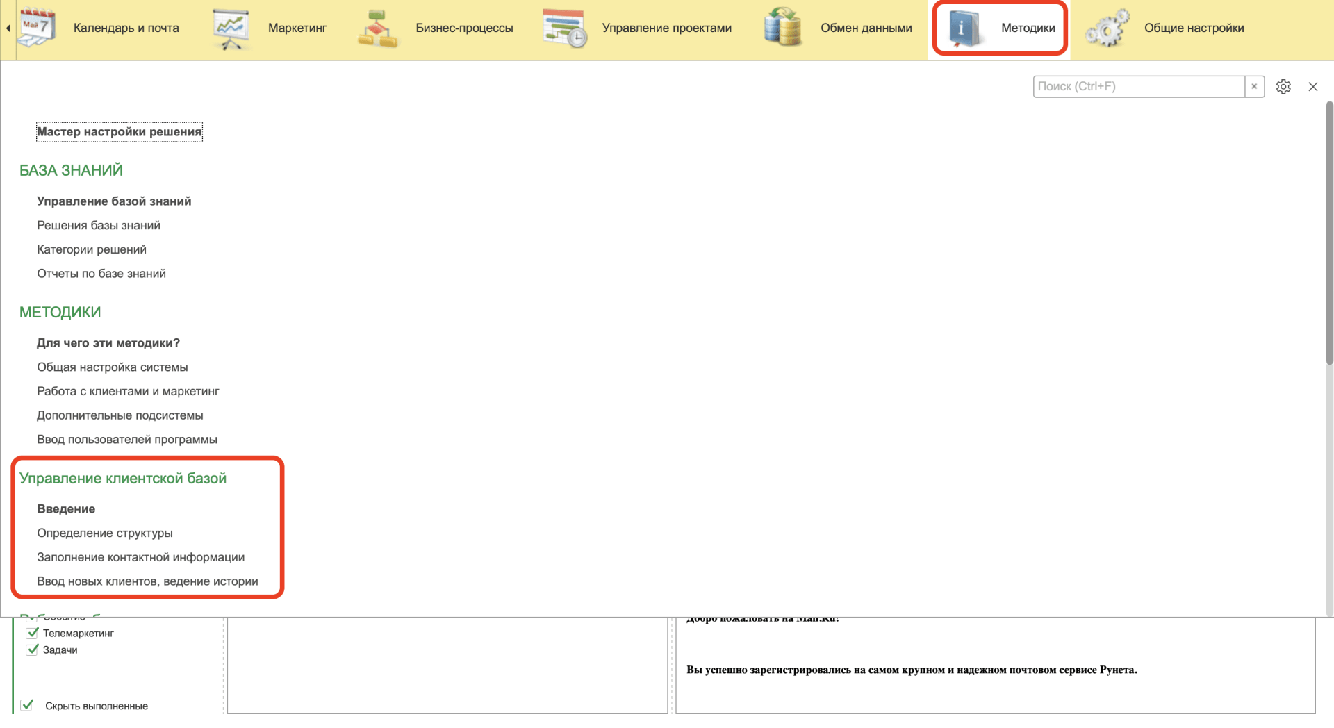 Если вы новичок в работе с 1С: CRM, мы предлагаем изучить методики работы в программе. Эта информация находится в разделе «Методики».