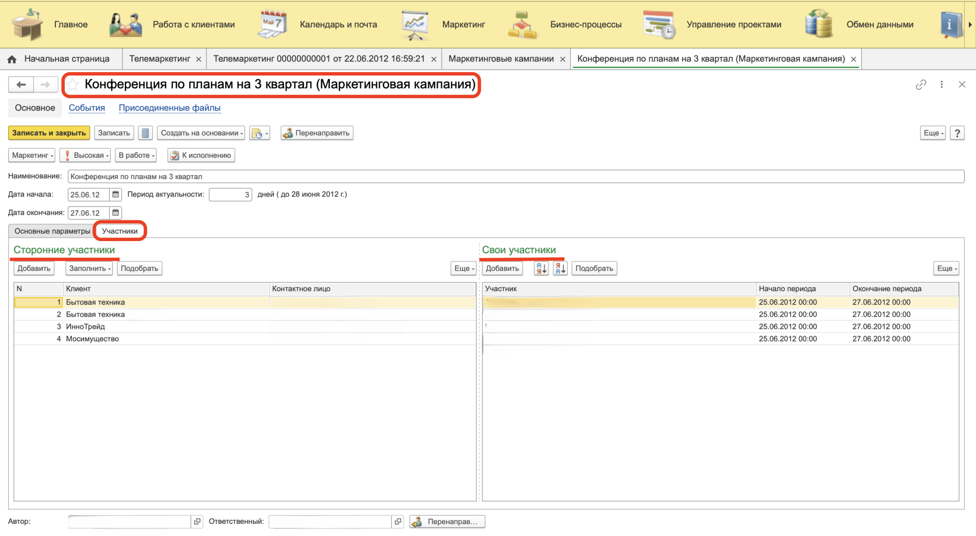 Для каждой маркетинговой компании можно добавить участников, как своих, так и сторонних.