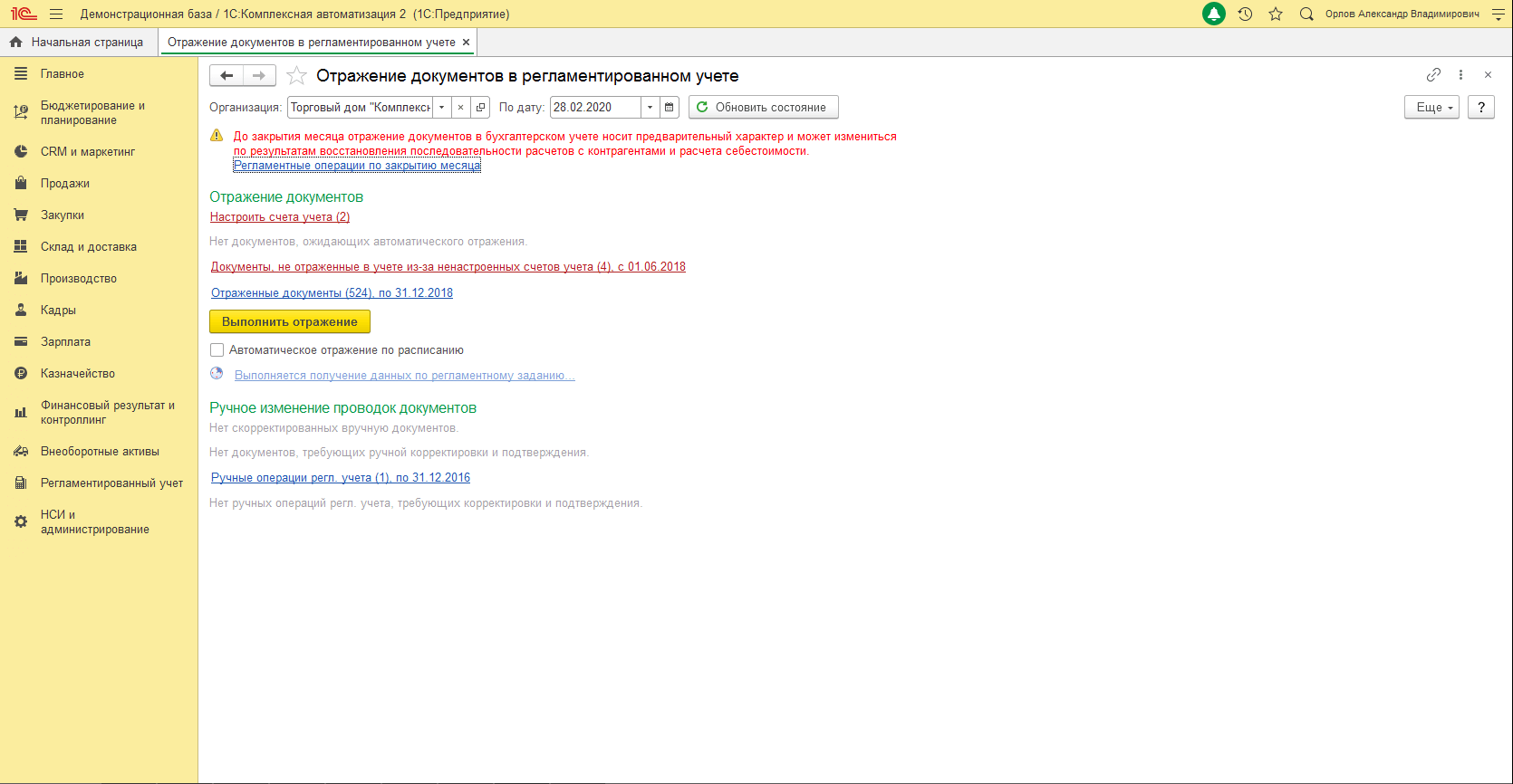 Данные бухгалтерского учета связаны с модулями управленческого и оперативного учета, что обеспечивает целостность информации.