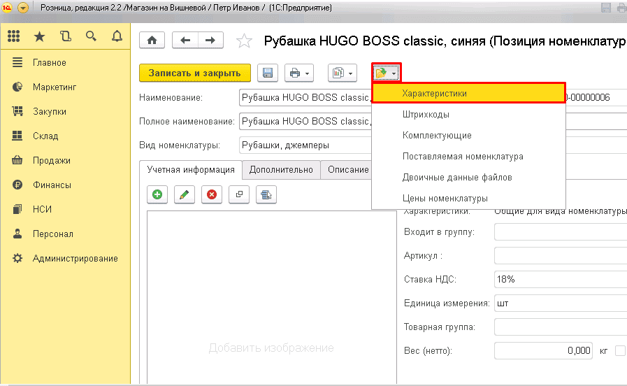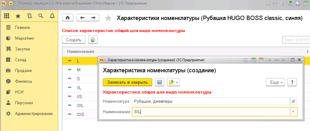 В "1С: Розница" можно использовать как общие характеристики для всех товаров, так и индивидуальные характеристики для каждой номенклатуры.