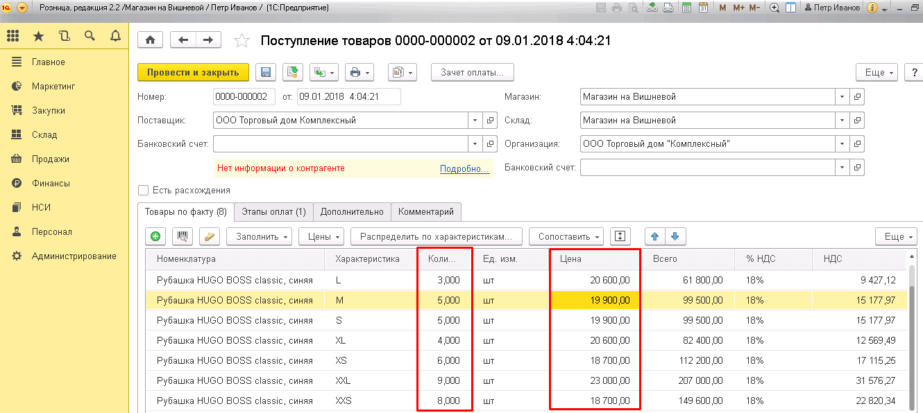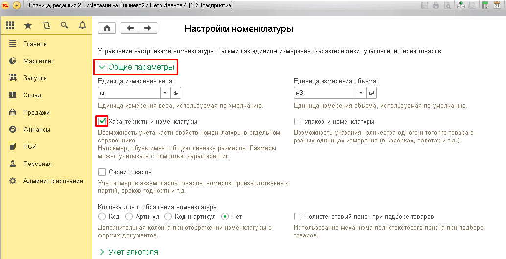 Настройка учета по характеристикам в "1С: Розница"