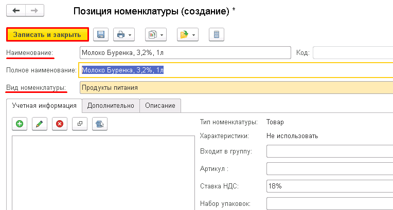 Нажмите "Записать и закрыть" в карточке вида номенклатуры.