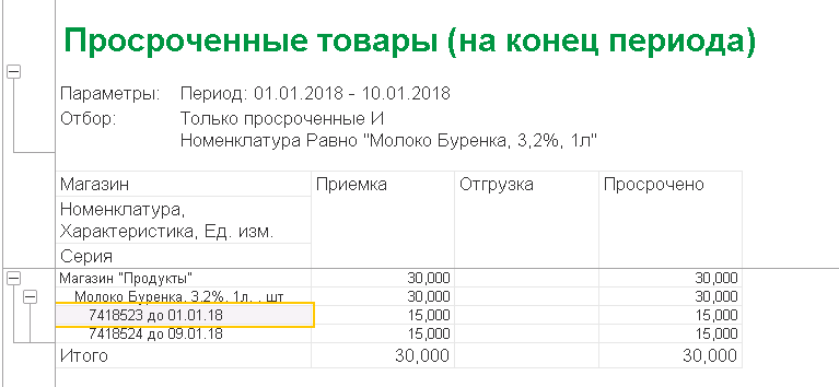 Отчет отобразит товары с истекшим сроком годности и позволит своевременно списывать их с учета.
