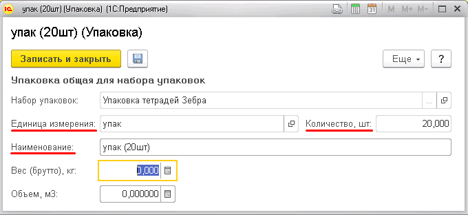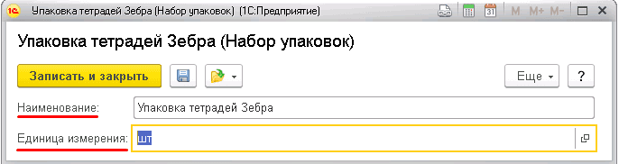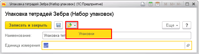 Создайте новый набор упаковок: Название. Величина: шт. Сохраните.