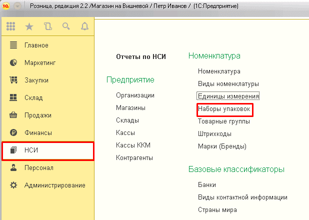 Перейдите к разделу «НСИ» – «Номенклатура» – «Наборы упаковок».