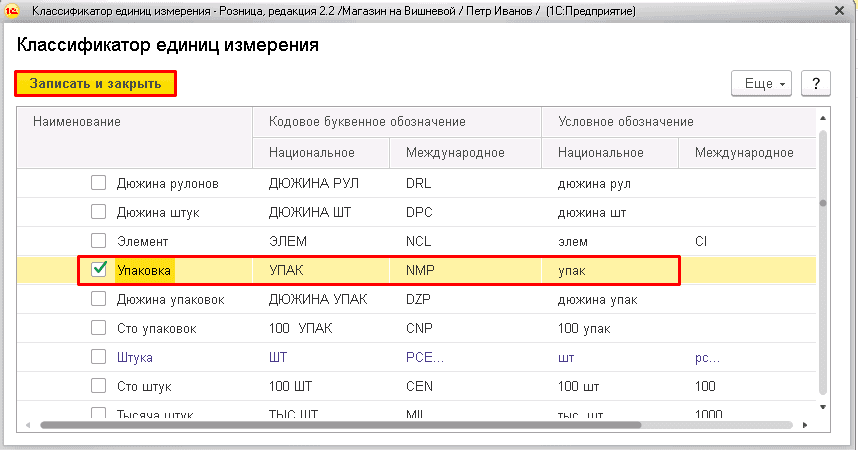 В открывшемся классификаторе величин найдите раздел «Упаковка», отметьте его и примените изменения.