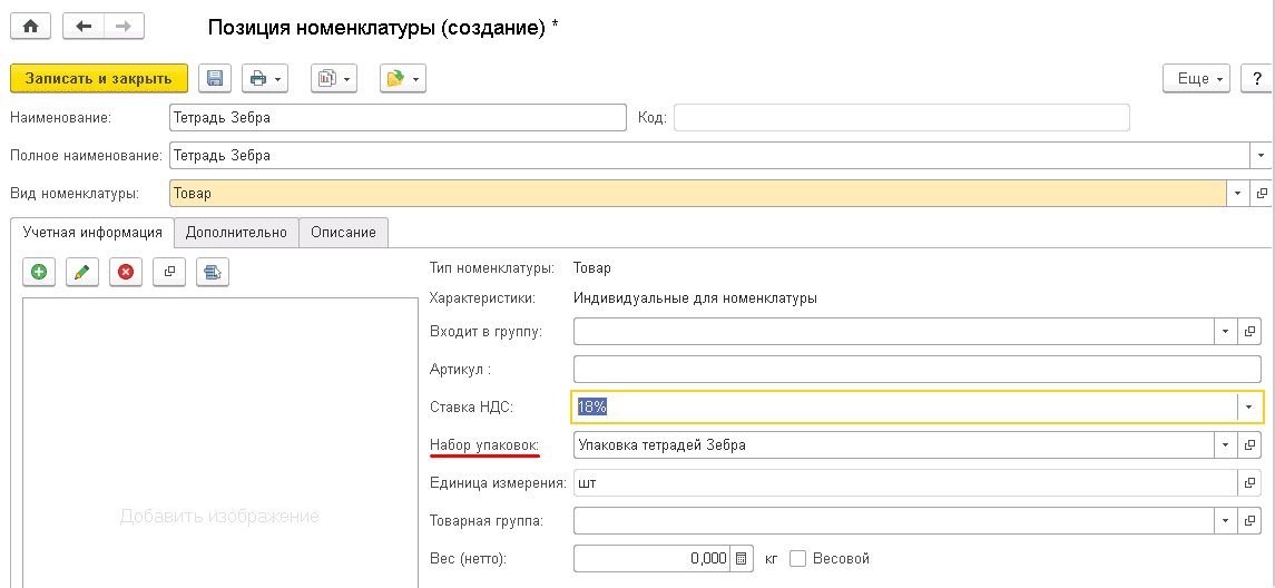 Шаг 2: Добавление единицы измерения "Упаковка"