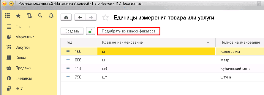 Перейдите к разделу "НСИ" – "Номенклатура" – "Единицы измерения". Выберите "Подобрать из классификатора".
