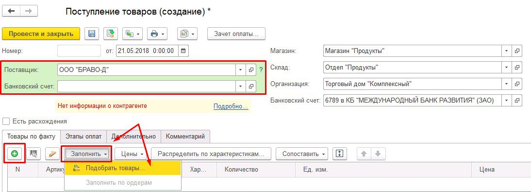 Этот руководство предназначено для ознакомления с процессом получения товаров от поставщика и регистрации оплаты в программе "1С: Розница". Для начала работы перейдите на вкладку "Закупки" и выберите пункт "Поступления товаров" в блоке "Закупки".
